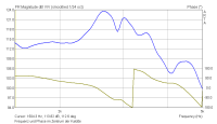 Allerdings wird durch das Horn auch eine relativ heftige Resonanz bei ca. 2 kHz verstärkt, was zusammen mit den auf der Impedanzkurve sichtbaren Hauptresonanzen bei 2 und 3 kHz eine Trennfrequenz von ca. 3 kHz nahelegt.