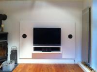 Vielen Dank für Eure zahlreiche Beteiligung und Tipps. Hab jetzt mal ein schnelles Handyfoto beigefügt. Wie man hoffentlich erkennen kann ist die ganze Geschichte nicht plan mit der Wand, sondern steht ein Stück hervor. Dies war nötig, da die Flat 5 ihre BR-Öffnung nach unten hat, und ich diese so beibehalten konnte. Die Chassis-Position entspricht ggü. den Seiten und dem Abstand nach unten dem Bauvorschlag. Zur Mitte und nach oben ist das Originalgehäuse natürlich kleiner. Weiterhin gibt es nicht nur keine Frequenzweiche (ist ja nur der BB) sondern auch keinen Sperrkreis o.ä. Die Flat 5 ist von Haus aus pur. Wenn ich irgend wann mal meinen neuen Verstärker fertig habe, dann werde ich noch mal messen, und kann dann auch über jRiver den Frequenzgang ggf. anpassen. Verpolte Lautsprecher kann ich im Übrigen NICHT ausschliessen, aber auch nicht mehr überprüfen, weil sie nicht mehr an den Verstärker angeschlossen sind. Ich halte es aber für unwahrscheinlich, weil ich sie vor längerem auch mal an einem anderen Verstärker hatte, und da war es der gleiche Eindruck. Aus den zahlreichen Kommentaren zum Einwinkeln entnehme ich, dass ich halt Pech habe, weil ich mein Wohnzimmer falsch konstruiert habe. Ich kann mir jetzt halt überlegen, ob ich alles aufreiße und eingewinkelt neu verbaue. Aber ich fürchte, ich kenne meine Antwort darauf... Das mit den Basotecplatten kann ich mir gerade noch nicht so recht vorstellen. Wo würde ich die anbringen sollen?