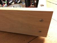 Der Symasym ist lauffähig im Gehäuse verbaut, wenn auch noch nicht ganz fertig. Das Gehäuse zu bauen war eindeutig wesentlich aufwändiger, als ich anfangs angenommen habe. Aber es gefällt mir sehr. Es ist eine Mischung aus 3mm Aluminium und massivem Eichenholz. Um alle Teile zu befestigen habe ich sage und schreibe über 70 Löcher gebohrt und ca. 22 Gewinde geschnitten. Was noch fehlt ist:
