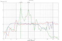 JFA schrieb:Bitte schön. Grün sind die Gehäusevibrationen, blau der ungefilterte Nahfeldfrequenzgang, rot der Freifeldfrequenzgang.