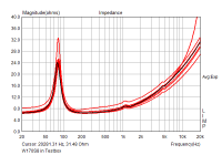 [ATTACH=CONFIG]45549[/ATTACH] [ATTACH=CONFIG]45550[/ATTACH] Beim W170S8 sind ähnliche Streuungen wie beim FRS8 zu verzeichnen. [ATTACH=CONFIG]45551[/ATTACH] Die Simulation mit einem 12 dB Tiefpass zeigt zwischen den beiden Impedanz-Extremen 2-2,5 dB Unterschied. Gruß Heinrich