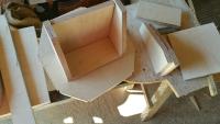 Mögliche Halterung: ein U-Kasten aus Multiplex auf dem das Horn nach unten zeigend von oben verschraubt wird. Verleimt und verschraubt sollte das stabil genug sein zum Spannen auf einem Kreuztisch.