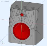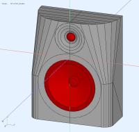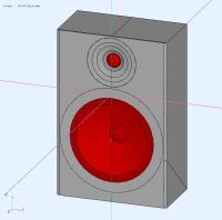 Die Schallwand in der Simulation hat die Maße BxHxT 400mmx800mmx100mm. Das ist nicht so groß wie vom Fragesteller geplant, aber sollte ausreichen um grundsätzliche Fragen zu klären und die Rechenzeit für die Simulation zu limitieren.