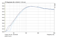 Messtechnisch tut sich da nicht so viel. Aber es reicht. Fürs Gehör ist es der Unterschied, den ich mir erhofft habe. Es klingt größer, voller, und weniger hart. Die Oberbassbetonung verschwindet scheinbar, so wie es auch bei der früheren Variante war, wo ein ähnliches Verhalten über die Frequenzweiche realisisert wurde.