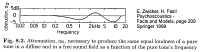 Nach deepL "Dämpfung, die erforderlich ist, um die gleiche gleiche Lautstärke eines reinen Tons in einem diffusen und freien Schallfeld in Abhängigkeit von der Frequenz eines reinen Tons zu erzeugen"