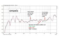 Die Messungen zeigen ein leicht anderes Bild: Danach stellt sich für mich der 5,6µF-Kondensator als die passende Wahl heraus. Die Höhen sind axial noch etwas überpräsent.