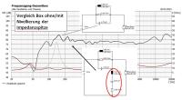 Wenn man die Impedanzspitze im Tieftonbereich virtuell linearisiert, tut sich nicht sehr viel. (Wenn man den Widerstand in dem Saugkreis weglässt, schon etwas mehr.)