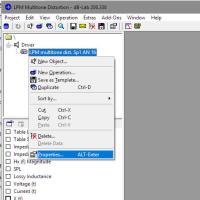1. Mit der Software Klippel dB-Lab Viewer (ist kostenlos) wurde ein Multiton-Signal erstellt. Nach dem Start, in der linken Sidebar mit rechter Maus auf "default driver" klicken und "Properties" wählen: