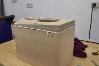 Zudem habe ich die Kalotte von hinten mit Tesamoll o.ä. abgedichtet., da mein MDF recht krümelig ist..