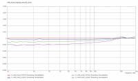 Bei diesem Hochtöner erreichen die IMD-Spitzen kaum 0,3% Klirr und trotzdem lässt sich praktisch kein Unterschied in den drei IMD-Diagrammen erkennen. Selbst bei -60dB Klirrdämpfung (0,1% Klirr) ergeben sich nur marginale Unterschiede. Erst im Bereich 0,03% Klirr zeigen sich kleine Unterschiede.