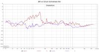 Der deutlich erhöhte Klirr bei den GF250 kommt vom BR Rohr denn nach diesen Messungen habe ich bei gleicher Lautstärke den Kanal verstopft und der hohe Klirr war komplett verschunden, ... der Klirr zeigte sich als deutliche Rauhheit in den Stimmen. Gerade bei TMT die im Stimmenbereich mitspielen müssen, würde ich in keinem Falle in BR gehen. Die umgesetzte CB-Version mit den TIW300 zeigt, dass es auch deutlich besser geht. Vorteil ist noch dabei dass die Gruppenlaufzeiten bei der CB Variante deutlich kleiner ausfallen, ...