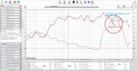 Bei Trennfrequenz stimmt imho die Phasenlage nicht - bei einer 12dB Trennung beider Zweige muß häufig ein Zweig