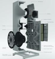 Zitat:Die beiden 12 Zentimeter messenden Mitteltöner mit Kohlefasermembran sind hinter einem Schlitz verbaut, der sich harmonisch an die Schallführung des Hochtöners anschließt und das horizontale Abstrahlverhalten aller drei Töner verstetigen soll. Die Schallwand aus Kunststein ist dabei nicht plan, sondern wie eine große Schallführung leicht zu den Seiten hin gerundet – das beschränkt den Abstrahlwinkel auf einen sinnvollen Nutzbereich von etwa +-60 Grad und verringert zudem effektiv das Auftreten von Kantenreflexionen.