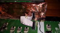 Die Kapazitäten bekamen je einen kleinen OSCON zur Seite. Der Eingang erhielt eine zusätzliche Pufferung in Form eines 3.300 uF Elkos.