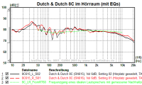 Die D+D wurde ja sicherlich wandnah aufgestellt - denn dafür ist sie soweit ich weiß konzipiert. Und was man in der gewedelten Messung erkennen kann: Oberbassschwäche und leichte Überhöhung ab 300Hz. Und (für meinen Geschmack) zuviel Bass.
