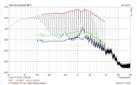 Wenn man nun die MDT-Messungen der beiden Tieftöner vergleicht (wie schon gesagt 8'' gegen 15'' ist offensichtlich nicht fair und etwas schwierig zu vergleichen, da der 15'' z.B. erheblich mehr Pegel im Tiefton macht), fallen die Verzerrungen beim 15'' Chassis, bis auf eine Stelle, wie erwartet niedriger aus. Mir scheint auch die "Dichte" der MTD-Signale beim 15'' etwas geringer (also etwas weniger Anregungen).