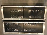 Auf der Frontseite befinden sich 2 Netzschalter und 2 EIN LED Leuchtmelder, auf der Innenseite dazu ein Softstart- und DC-Blockmodul separat pro Trafo.