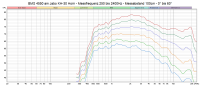 Ich hab das Horn (mit Treiber Big Grin) auf die Box gestellt und den Frequenzgang ungefiltert ab 250Hz in 100cm abstand auf Achse und in 10° Schritten bis 90° gemessen.