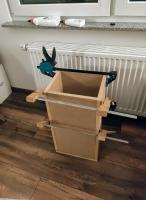Interessiert zwar niemanden außer mir, aber es ist doch wirklich schön, dass man bei so kleinen Kisten noch nicht mal in Keller oder Garage muss, sondern gemütlich im Arbeitszimmer bleiben kann, um zu leimen.