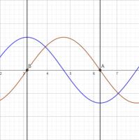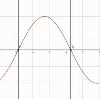 Mein Sohn war so nett, mir in GeoGebra was zu basteln, so dass ich das nicht händisch zeichnen musste (und man es sich auch im zeitlichen Verlauf ansehen kann). Allerdings liegt hier das Gehäusewä zwischen den zwei senkrechten Strichen, die die linke (durch den Punkt B) und rechte Wand (durch den Punkt A) des Gehäuses (in einer Dimension) dartstellen. Die Bereiche links von B und rechts von A dürft ihr für die Grundschwingung vergessen.