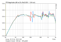 Die Wirkung/Wirkungsweise des Resonators ist schön zu sehen. Wie genau oder fehlerbehaftet die Simulationen (mit den derzeitigen Annahmen) tatsächlic sind - dazu mehr im nächsten Beitrag. Als Einstig nur kurz die Messung des Frequenzgangs (identisches Gehäuse, ein bedämpfter IRR):