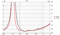Zitat:Dieses völlig frei schwingen ist dann das, was man als Höcker in der Impedanzkurve sieht. Im Frequenzgang dagegen kommt erst ein schmalbandiger Einbruch, dicht gefolgt von einer ebenso schmalbandigen Spitze. In Akabak kann man das schön betrachten, wenn man keine Wallimpedance benutzt.