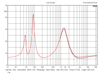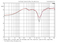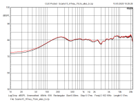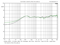 Das gilt im ähnlichen Maße auch für deine Abweichungen im Vergleich zu den Ergebnissen von Timmi. fs und Qts liegen um etwa den gleichen Faktor höher. Wenn das Chassis weich gespielt wird (Empfehlung: vorher 5 Minuten einen 20Hz-Sinus am Hublimit draufgeben) werden beide Werte sich denen von Timmi annähern. Ganz erreichen wirst du sie nicht. Deine Charge ist wohl härter eingespannt und bei Timmi sind nach meiner Erfahrung fs und Qts tendenziell öfters niedriger. Auch hier gilt: Die simulierten Verläufe mit den unterschiedlichen TSP werden im gleichen Gehäuse sehr ähnlich sein.