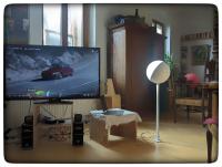 Da die Styropor-Kugeln nun mal hier waren, setzte ich die Idee mit den Monacor Exciter um. Sie funktionieren, die Tonalität lässt noch zu wünschen übrig. Irgendwann sollte mein MusikPC wieder da sein und ich kann die "Topfresonanz" heraus filtern und den Tiefton nahtlos hinzufügen..