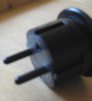 Da isser nun...ging ja ma fix. Ein vergossener Plasikklumpen ohne Schrauben. Auch die Steckkontakte, ließ das Foto ja ahnen, sind aus Kunststoff....Messungen im mOhm-Bereich ergeben mal nix.