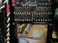 Was ich aber sehe: Die Ausgangskabel sind unbeschirmt und sind dann unter der Platine verlegt, wohlmöglich auch noch unter dem Digitalteil. Unabhängig von Deinem Problem ist das keine gute Praxis.
