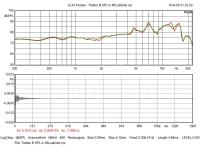 Obacht: Die Membran wird noch mit Acceleration angetrieben, d.h. ohne TSP. Das muss ich noch nachtragen. Aber prinzipiell scheint das zu funktionieren, siehe Einbruch bei ca 15kHz, der sich auch bei der Messung von Heinrich ohne Kegel findet: