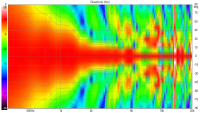 Slaughthammer schrieb:Ich hab einfach mal über die Länge des Ovalos zweikanalig im Nahfeld gemessen und das am Mikro ankommende Delay an verschiedenen Punkten miteinander verglichen, und dann grob abgeschätzt wie viel Umweg der Schall aus der Mitte gegenüber dem vom Rand braucht. Daraus folgen dann erforderliche Umwege: Das habe ich jetzt nochmal aufgegriffen und habe in VituixCAD eine Linie aus Punktstrahlern mit diesen Nahfeldmessungen und den ermittelten Versätzen gefüttert, nur so als Machbarkeitsstudie, ob man nur mit Umwegleitungen (aka Delay) überhaupt so etwas wie eine homogene Zylinderwelle hinbekommen kann (wie immer das minimale Linearray mit zwei von den Ovalos): Das ist natürlich ein idealisiertes Modell was ich da angenommen habe. Aber es zeigt mir, dass mein Vorhaben nicht ganz hoffnungslos ist. Ich erkläre jetzt mal mein Ziel: Nebenkeulendämpfung ~10 dB unterhalb min. 10 kHz, besser 13...14 kHz Gruß, Onno