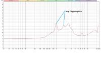 TML-Resonanz?, werdet ihr jetzt fragen. Die passt doch gar nicht von der Länge her. Stimmt. Das liegt daran, dass dort am TML-Ende (dem Hornmund) die akustische Lastimpedanz nicht mehr gegen 0 geht (wie bei einer TML im Bass), sondern schon einen erheblichen realen Anteil hat. Das verschiebt die Resonanz deutlich nach oben.