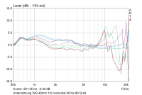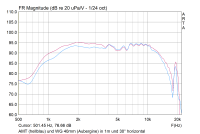 Warum der Waveguide den Hochton ab ca. 7.000 Hz um ca. 1 dB schwächt, ist mir schleierhaft (könnte aber an der Paarungleichheit der beiden unterschiedlichen AMT liegen... ah, und noch eine Idee: Die Tiefe des Waveguide. Da sitzt der AMT 4 cm weiter weg. Doch nicht; das macht nur ca. 0,3 dB aus).
