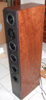 Projektname: Avitus Entwicklungsziel: „schlanke“ Standbox Konzept: 3-Wege, bassreflex mit Hochtonmagnetostaten Tiefton: 4x Dayton RS150S8 in zwei Kammern mit je 32l Nettovolumen Mittelton: Dayton RS150S8 in 7,5l Nettovolumen Hochton: Bohlender & Graebner Neo3 PDR mit eigenem Innenfach Trennfrequenzen: 350Hz (12db) und 3000Hz (18db) Abmessungen: 125cm(H) x 20cm(B) x 38cm(T)