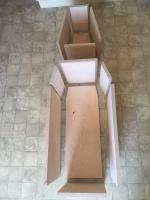Dann nach und nach die Bretterchen zusammen gepappt. War nicht so einfach, rechter Winkel ist nicht gegeben bei Front-Boden-Rücken-Deckel. Wie hat ein lieber alter Mann immer zu mir Jungspund (vor über 20 Jahren) gesagt: "Ein Blinder wäre froh, wenn er dies sehen könnte". Ich weiß, ist ziemlich sarkastisch, bitte nicht schimpfen.