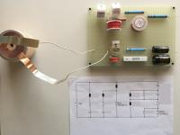 Die Frequenzweiche habe ich auf eine Lochrasterplatine aufgesteckt. Bitte seht Euch das Bild an.