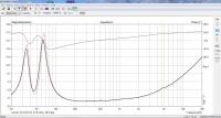 Als erstes startete ich mit Impedanzmessungen ohne Frequenzweiche. Gehäuse komplett unbedämpft und keine Dämmung in der Farbe Rosa: