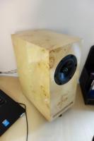 Allerdings ergbit sich durch den Lack auch ein kleines Problem. Da gut 2mm Lackschicht drauf gekommen ist, schließen die vorher eingepassten Chassis nicht mehr bündig ab, sondern sind etwas eingelassen. Da werde ich in der nächsten Zeit noch mal etwas Furnier einlegen müssen, damit sie wieder bündig abschließen. Auf dem Foto auf dem er zu sehen ist, sieht der Versatz noch etwas krasser aus, als er in Realität ist.