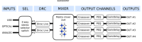 Ich würde einfach ein zweites DDRC-24 nehmen, für jede Seite ein Gerät. Das ist viel preiswerter. Über den Input Router kannst Du Dir dann entweder den rechten oder linken Kanal als Eingang für die 4 Ausgänge auswählen.