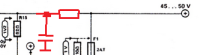 Hat mir ja doch keine Ruhe gelassen. Ich hab jetzt folgende Änderungen durchgeführt. Leiterbahnen habe ich geschnitten (an den kleinen Elkos C8/C9) und dann jeweils einen 10 Ohm/1Watt Widerstand eingelötet, der nun zwischen +- 50 Volt und dem Rest liegt. Ich habe jeweils kleine Brücken gelegt, die das Layout nicht stören sollten. An zwei Punkten habe ich dann 2x 100 nF parallel gelötet und eine Verbindung zum 0 der Platine hergestellt.