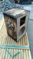 Front und Rückwand sind 18mm MDF, Rest ist 16mm MDF und mit 10mm Kistenholz aufgedoppelt. Ringsrum 2mm Überstand damit das ganze Bündig mit dem Nadelfilz verläuft. Die Bassreflexöffnung ist ein DN100 KG Rohr auf 6cm eingekürzt.