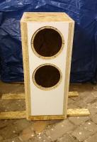 Ich würde erstmal ein Testgehäuse mit 2x 50l für die TT zusammenschmieden und das Horn oben