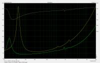 In grün der Impedanzverlauf des RSS390HF ( 3 Kurzschlussringe) und im Vergleich dazu gelb der Verlauf des OmnesAudio MW 8W (gehe mal davon aus, ohne Kurzschlussringe):