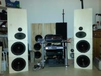 waren im Überraschungspaket von Wolfgang (spectrum audio) und spielen sich gerade ein, momentan ab 300Hz ohne weitere Filter, dadrunter laufen 2 Stück 20 cm Dynavox in U-frame OB, vom Dynavoxbattle.