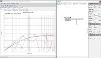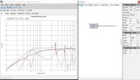 Und da ist mir sofort Horschibills (Olis) Maxi-AL in den Kopf geschossen, die mich gleich beim ersten Hören doch sehr positiv überrascht hat. Also, mal SPL-Trace angeschmissen und die Schalldruck- und Impedanz-Frequenzgänge aus der K&T ausgelesen und schnell in Boxsim (mit VituixCAD brauch ich immer noch länger) importiert, ein virtuelles Gehäuse gezimmert und fünf aktive Sperrkreise und ein Shelving-Filter darauf losgelassen und das Ergebnis scheint auf den ersten Blick nicht so unattraktiv.