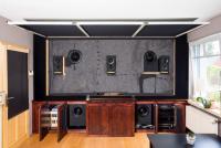 Was mir spontan auffällt: Die Subs in den Schränken müssen doch klappern, oder? Des weiteren: Die TP wurden ja nicht für diese Art von Einbau entwickelt. Die Wolle dürfte jede Menge Schall unterhalb des Bafflesteps schlucken (je nachdem wie Dick sie ist), der dann fehlen dürfte (meine Einschätzung). Und 4 300S sind zwar schön, aber Pegelorgien wirst du mit denen keine feiern können.