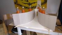 Die Baumaterialien unterscheiden sich auch: das 3mm Pappelsperrholz ist zu dünn und muss ich noch versteifen-oben biegt sich das durch...