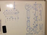 Das Photo zeigt die Maßzeichnung für die Safineia und SUB, mit Hypex-Modulen (FA 253 und FA252). Der SUB ist als U-Frame, bedämpft mit Filtermatten aus dem Heizungs-und Klimabereich (Filtertypen: G4 und M5), welche einen Tiefpassfilter bilden um die rückseitige Frequenzspitze zu mindern und weiterhin ein Quasi-Kardioid zu bilden (siehe auch NaO-Open Baffle http://www.musicanddesign.com).