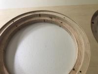 Etwas aufwändiger gestaltete sich das Anleimen der Rundholz Stäbe auf die Rückseite der Schallwand: